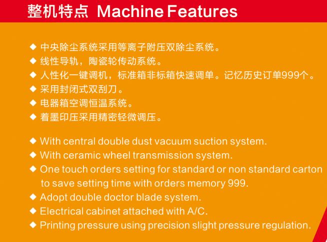 公司産品主要(yào)有(yǒu):全電(diàn)腦(nǎo)高(gāo)網線六+1,七+1、高(gāo)速印刷開(kāi)槽模切機(jī)、全自(zì)動÷高(gāo)速印刷開(kāi)槽模切機(jī)、自(zì)動半自(zì)動輪轉開(kāi)槽機(jī)、大(dà)滾筒印刷機(jī)、半自(zì)動粘箱機(jī)、開(kāi)槽切角機(jī★)、分(fēn)紙(zhǐ)壓線機(jī)、高(gāo)速半自(zì)動釘箱機(jī)等全套紙(zhǐ)箱設備。