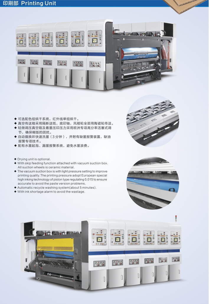 公司産品主要(yào)有(yǒu):全電(diàn)腦(nǎo)高(gāo)網線六+1,七+1、高(gāo)速印刷開(kāi®)槽模切機(jī)、全自(zì)動高(gāo)速印刷開(kāi)槽模切機(jī)、自(zì)動半自(zì)動輪轉開(kāi)槽機 (jī)、大(dà)滾筒印刷機(jī)、半自(zì)動粘箱機(jī)、開(kāi)槽切角機(jī)、分(fēn)紙(•zhǐ)壓線機(jī)、高(gāo)速半自(zì)動釘箱機(jī)等全套紙(zhǐ)箱設備。